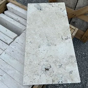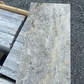 | COPING Serenade™ Travertine | Silver Mist | 12″ x 24″, 16″ x 24″, 14″ x 48″ | 2″ | Sawn Top (smooth) |