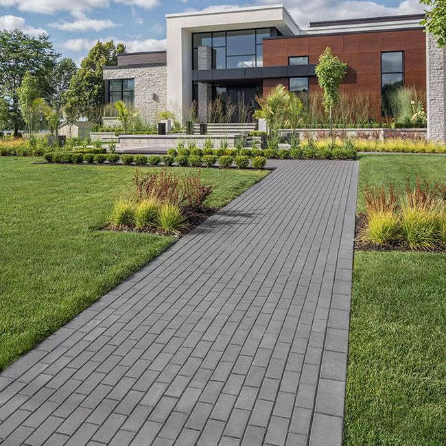 Westmount pavers offer a modern take on traditional plank-style paving, featuring a sleek, elongated format with a lightly textured surface.