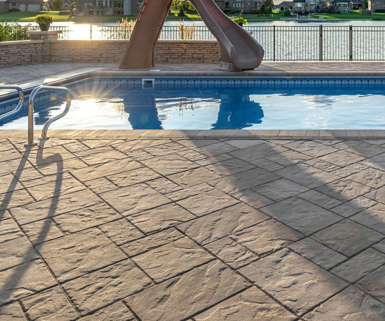 Inspired by natural cut flagstone, the blended colors and distinctive texture of Beacon Hill Flagstone has a relaxed look and feel, with all the benefits of Enduracolor technology. The subtle surface texture is comfortable to walk on in bare feet, but appears more dramatic in the light of sunrise and sunset.