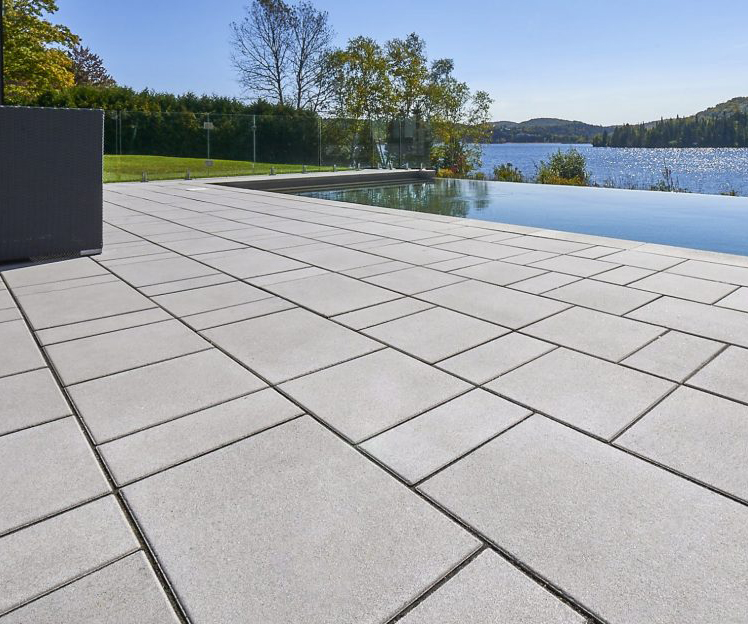 A large-format paver system with a sleek, modern surface designed for patios, walkways, and pool decks with clean, contemporary style.