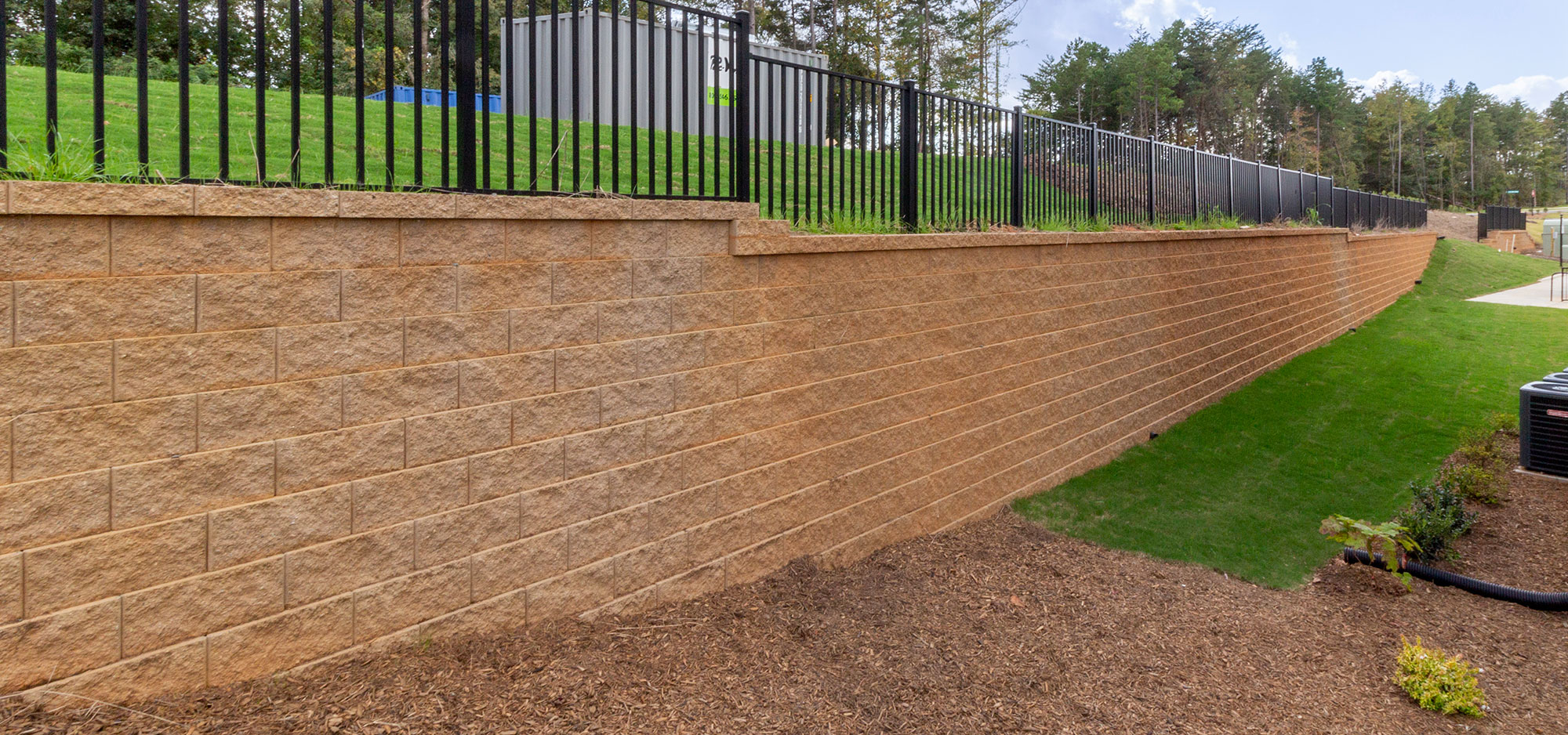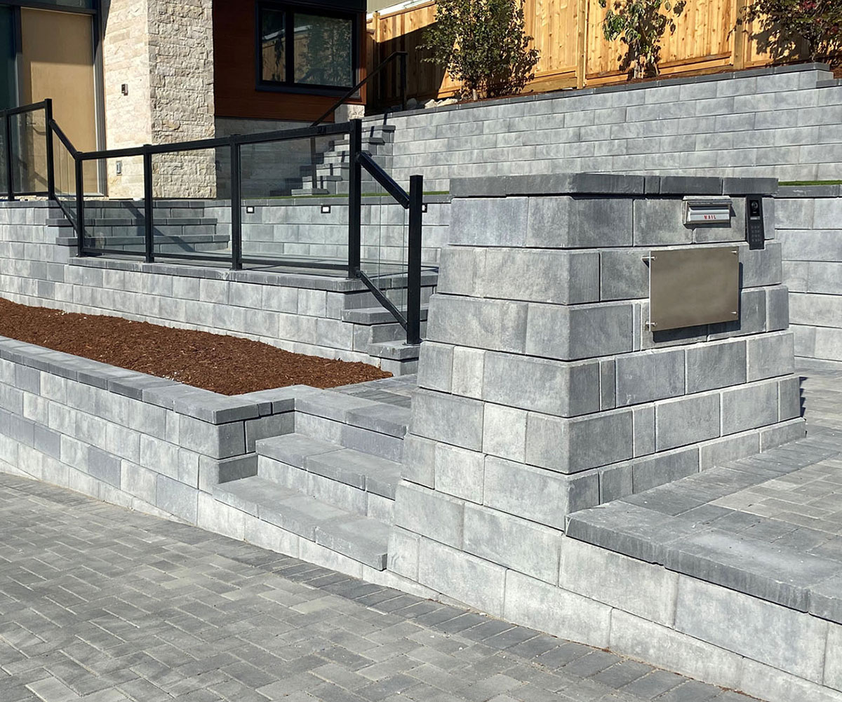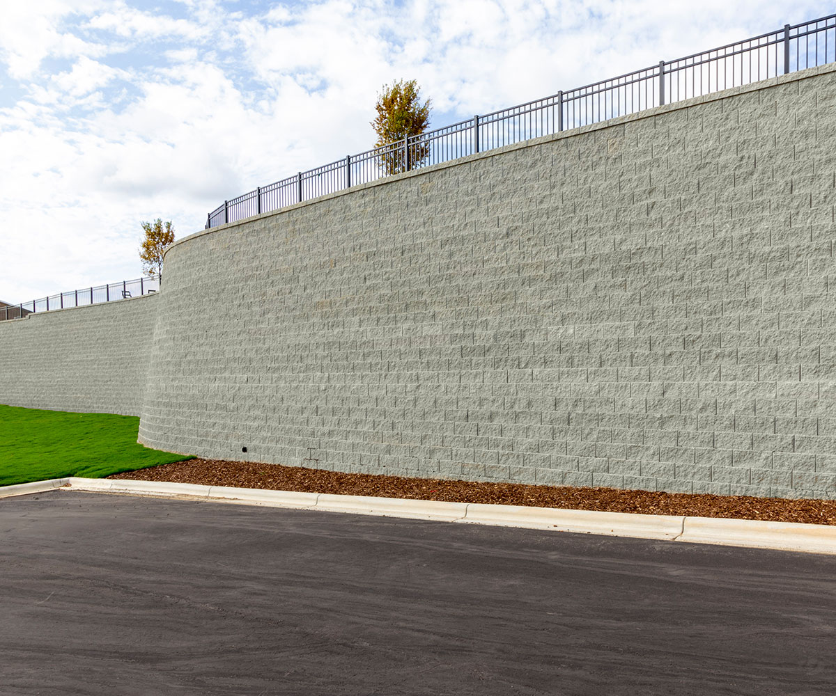 A high-performance segmental retaining wall system known for its strength, efficiency, and ease of installation—ideal for residential and commercial retaining wall applications.