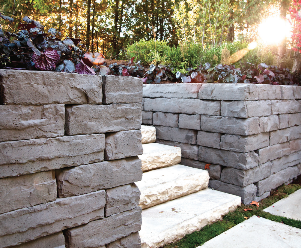 With the look of split stone, the AB Collection blends naturally into any terrain to address various grade changes and create stunning landscapes.